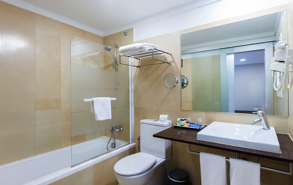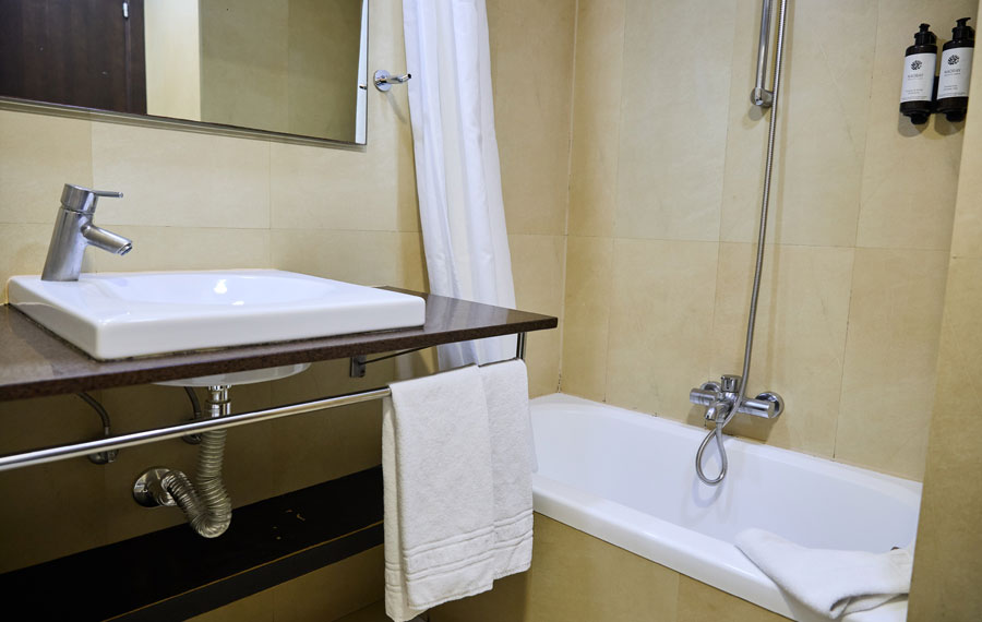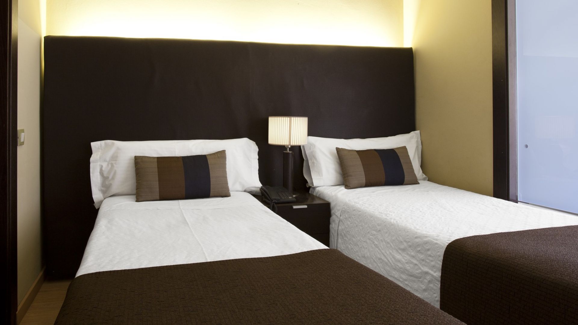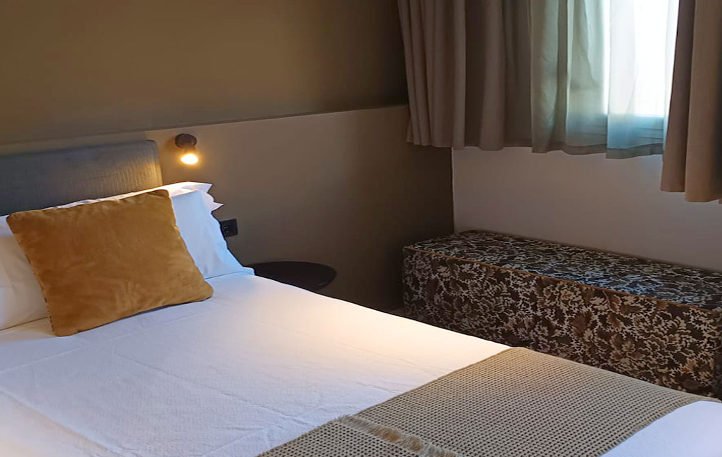 Nuestros renovados apartamentos superiores tienen capacidad para 4 personas, ya bien sean adultos o adultos con niños. Tiene una habitación privada para 2 personas (2 camas individuales o 1 cama de matrimonio bajo petición) con armario empotrado y TV. Baño completo con ducha y con acceso desde el pasillo. Salón con sofá cama desplegable, TV y cocina totalmente equipada. Se accede a ellos por ascensor.